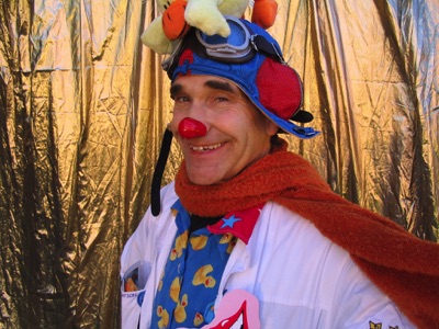 He travels the world teaching workshops, training performers and medical practioners, giving seminars, lectures, talks and still visits sick kids in hospitals.